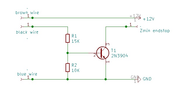 That would be OK with most control boards (parameters have to be changed in Marlin), but the MKS Gen card’s hardware prevents the use of this type of sensor. As the device only cost about £3 ($4-$5), the obvious course of action would be to order a NPN type sensor (which would give logic “LOW” voltage while it is not triggered and logic “HIGH” voltage when it is triggered) and instal that with only a small modification.
