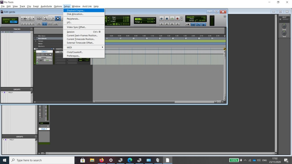 If you cannot find your audio interface in Pro-tools you have to go and update/ reinstall the driver for your device. Don’t assume that the drivers are fine. My one broke from one moment to another – no warning – and had to be reinstalled to make it work again, so save the headache and just update it straight away. While you are at it, you should update your default audio engine (what Windows is using), more of that below