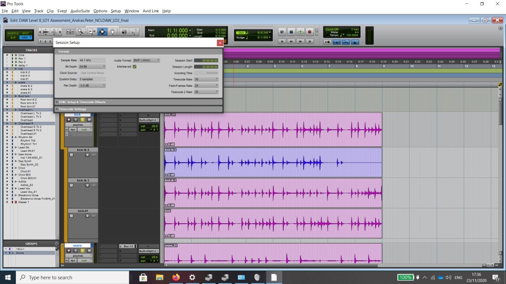 The sample rate is clocked by an external clock which is usually your audio interface or Windows audio (No idea about Macs, sorry). So you need to make sure that the sample rate and “bit depth” in the Windows settings, even if it is an external interface, is set to the same as your session. If the sampling rate set higher than the session, Pro-Tools will still start up, but you will have no audio outside Pro-Tools, unless you have a good enough interface which can handle clocking to different sampling rates. Playing your track, you will also hear a great example of aliasing and why the Nyquist Theorem is important (see jargon buster). If the system sampling rate set lower than the Pro-Tools session, it will give you an error message and the session will not be loaded at all.