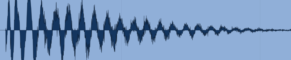 This is an example of the graphical representation of a complex soundwave (one snare drum hit). The horizontal value is time and the vertical is amplitude or intensity. As the intensity increasing and time decreasing between cycles the pitch of the sound gets higher.