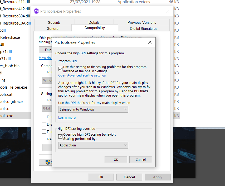 This is a very short post about how to fix Pro-Tools scaling and display issues on Windows 10. The information can be found elsewhere, but it literally took me 2-3 hours to find the relevant forum posts, so I wanted to create an extra place to find this info.