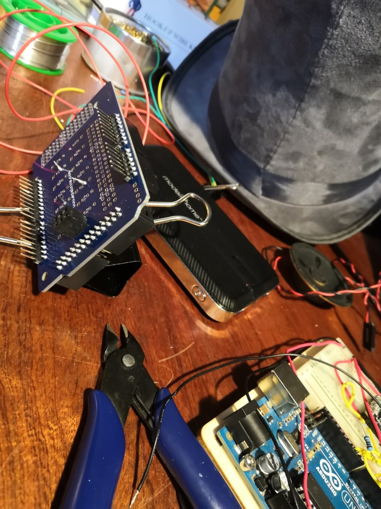 This page is about the submitted artefact for the Creative technology Project as part of my Sound Design Studies at Napier University Edinburgh. This is a stylish top cylinder hat which helps the concerning gentle-person to keep anyone away whom would enter their pre-determined personal space. There are photos at the end of that page, in case you just would like to see how it looks.